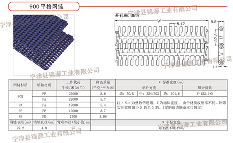 節(jié)距27.2mm 塑料網(wǎng)帶材質(zhì):pom, pp, nylon、、、等