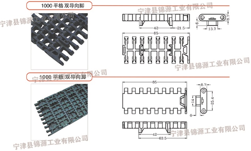 塑料網(wǎng)帶由鏈輪驅(qū)動,網(wǎng)帶節(jié)距主要有12.7mm、15.2mm、19.05mm、25.4mm、27.2mm、38.1mm、50.8mm、57.15mm,開孔率2%-48%